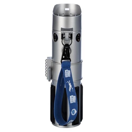 Quench your thirst for adventure with this unique Star Wars water bottle in the form of Anakin Skywalker’s Lightsaber hilt. Press the red button on front to pop open the top as if it were a beam. A translucent blue sipper lip is exposed within, part of a beam-like inner sleeve. Slide the button on the side to hear authentic Lightsaber sound effects and see the inner bottle light up. The Force is with your refreshment!