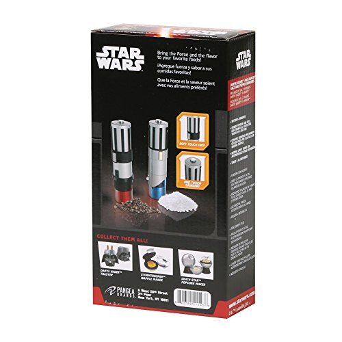 Everyone, from denizens of the Death Star to the irregular regulars at the Mos Eisley cantina, appreciates a little extra flavor. The Lightsaber salt and pepper mills are great tools no matter where your travels take you. These elegant grinders feature durable ABS plastic exteriors molded to look like your favorite Jedi weapon, with stainless steel and ceramic mechanisms inside. Each runs on four AA batteries (not included). Set of two grinders — red for Darth Vader, blue for Anakin Skywalker.